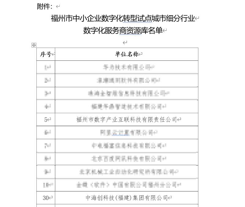 近日,福州市工业和信息化局发布了《福州市中小企业数字化转型试点城市第一批细分行业数字化服务商资源库名单》,经专家评审,福州市工业和信息化局研究,福州市工业和信息化局遴选结果公示,中开云(中国)官方科技(集团)有限公司和旗下子公司福州市数字产业互联科技有限公司双双入选“福州市中小企业数字化转型试点城市数字化服务商资源库”。